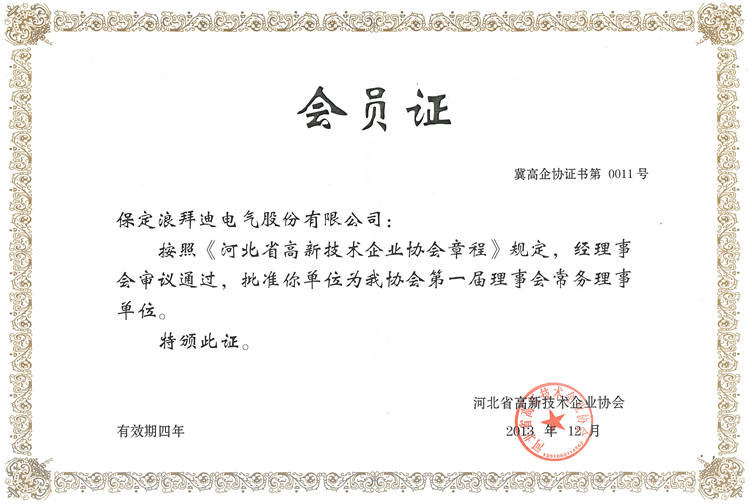 由河北省高新技术企业协会,根据《河北省高新技术企业协会章程》和《河北省高新技术企业协会会费收支管理办法》,选举产生了河北省高新技术企业第一届理事、常务理事等单位,我公司被选举为第一届常务理事单位。