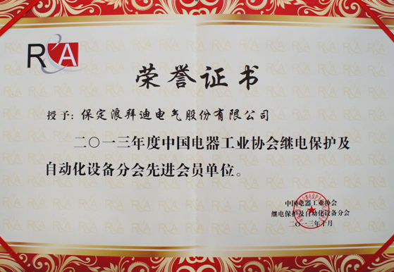 公司荣获中国电器工业协会继电保护及自动化设备行业先进会员单位